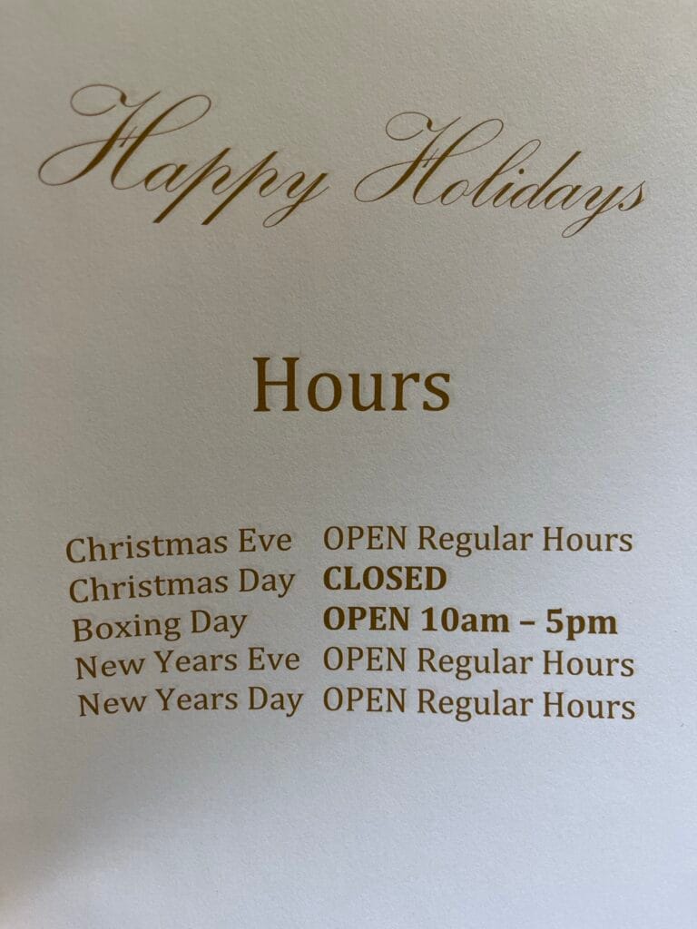Posted on November 29, 2024 by TeamKQHappy holidays! We will have our regular hours every day except for these two small changes: